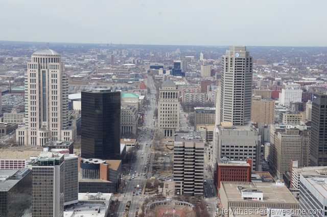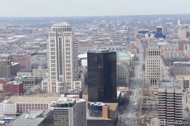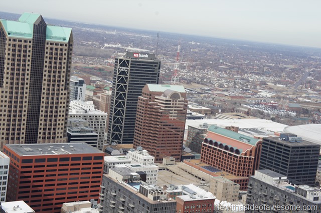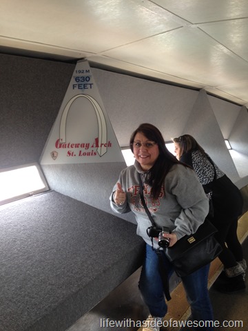 …then go for it!! I’m a little bit of both but I’m not too bad. I didn’t time the ride up but it went quick enough for me. It is an enclosed pod but the door is glass and you can see the inside of the arch (and possible escape routes…haha!) on the way up and down. Once you get to the top the room you are in feels fine…but you are up pretty high. The views though, are spectacular.