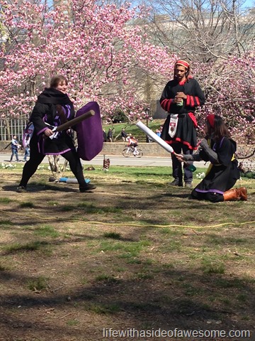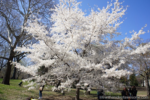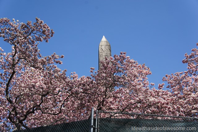 This is the Obelisk. It is currently being worked on but it looked pretty peeking out of the blooming trees.