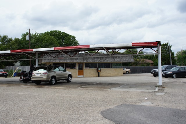 If you’d like, you can eat in your car, under the red and white awning, where a friendly carhop will bring your food to you.
