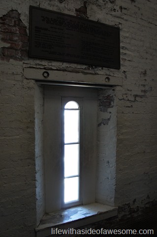 As you enter the bell tower area there is a plaque above a window.  I love the peeling paint and the brick being revealed behind it.