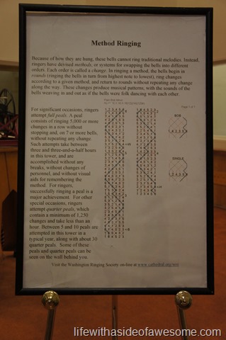 A full peal, which is a continuous performance that takes up to three and a half hours to complete, is rung in honor of the opening and closing of Congress and on state occasions, including all national holidays. To achieve this feat, the tower hosts a weekly practice session for the bells’ stewards, members of the Washington Ringing Society of the North American Guild of Change Ringers.